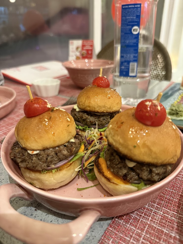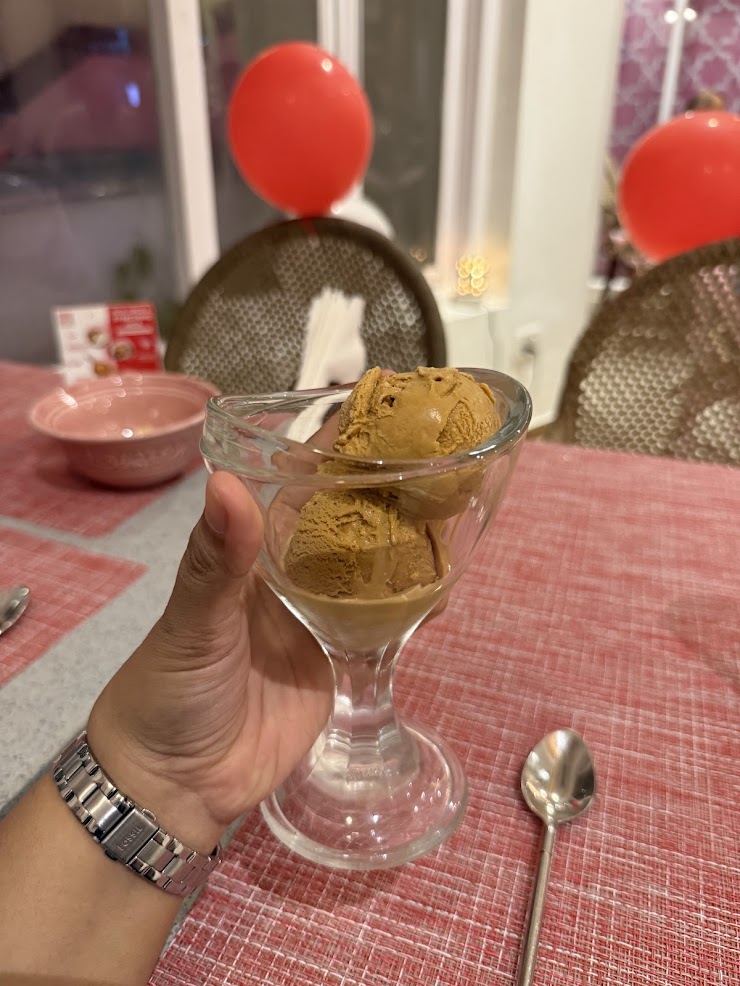 We had some nice and wholesome-ish food. Naqu had veg, coz the meat there was not halal. I had the beef sliders, but couldn’t finish more than one coz I was too full for some reason. The veg food was amazing though, even better than the beef. The folks at Mama Miso had even decorated the table area with some balloons. Near the end of the meal, when we were finishing our gelato, the staff brought a small cake with “Happy birthday” written on it. SO CUTE AND NICE. They had dry ice in the base of the cake dish, and poured water to give an awesome feel to the whole cake cutting experience. And that’s how we cut the actual birthday cake for Naqu.