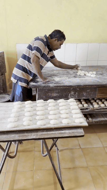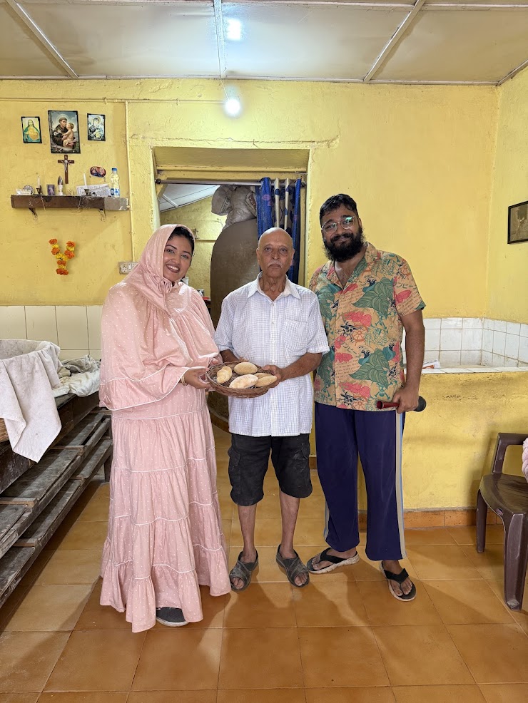 Soon, we got into the bakery for our workshop, and it was a cute modest bakery. Exactly where you’d expect real good food to be made. In our case, bread 🥖🍞. Medora introduced us to Mr. Godinho, who was a chill 80 year goan uncle. Exactly how you’d imagine. Doesn’t speak much, but says something funny usually. He took over the bakery when he was around 40, and before that it was his grandfather who ran the bakery. This is like the local bakery everyone around Majorda (and other parts of South Goa too) comes to at around 4pm to take ekdum freshly baked pao. He has 2-3 helpers who do the whole process of baking, while Uncle oversees them.