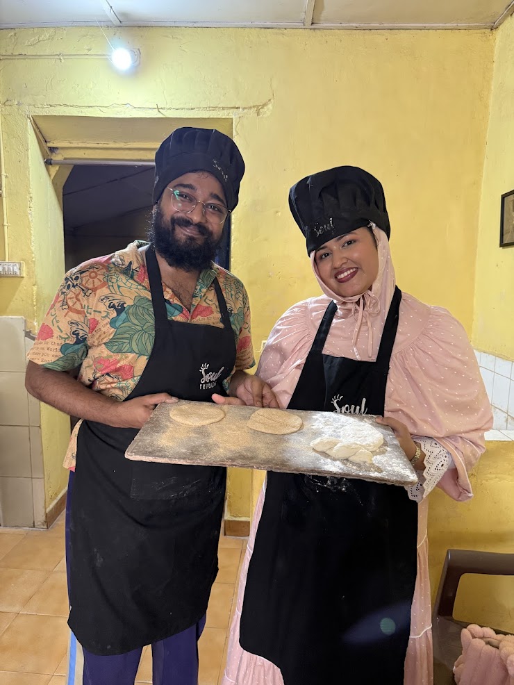 While the dough was being readied, Naqu and I got to making our own Poi and Loni. Obviously, Naqu did a great job, while I sucked. BUT it’s the effort that counts. And the dough was sooo fluffy. Anyway, we got our breads ready, and at the end of the real breads ka baking, our breads were put in. 4 mins later, and they were ready. This clay oven thing is quite badass haan. Mine came out… okay. While Naqu’s looked like it was made by Uncle himself. We joked around with uncle a bit, ate garam garam Poi (not ours) with some butter and lime soda, and then made our way back to Da Tita for the final part of the workshop. Which I had no idea about.