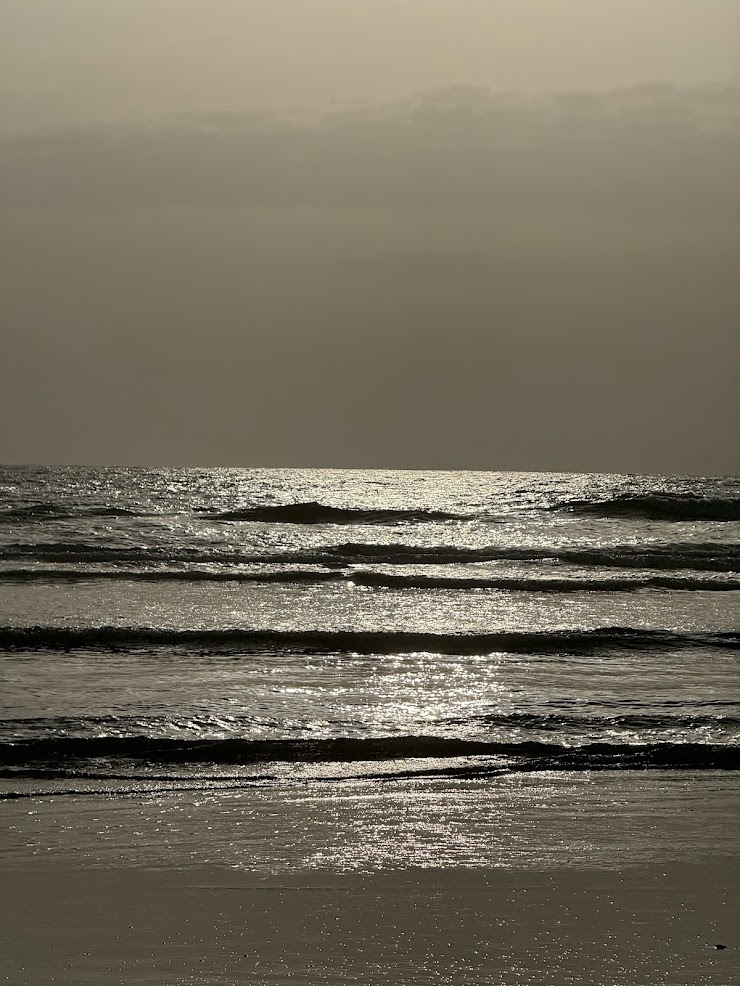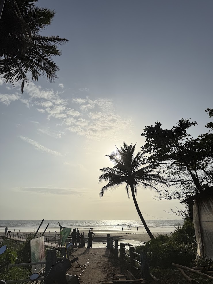 Since we were in South Goa only, we thought we'd go to some nearby beach randomly just to chill. It's been a day we were in Goa and hadn't gone to a proper beach, hence. **Spoiler alert** , we only go to this one beach in this trip. Went to Colva beach, and just walked on the beach. Lemme tell you, It's a nice feeling walking on the beach with the girl you love (and bonus is she loves you back!). We went ahead and sat in a nice place overlooking the sea (duh) and some kids playing football nearby. Stayed there till sunset, talking about life, how the day was, etc. etc. Just… peaceful.