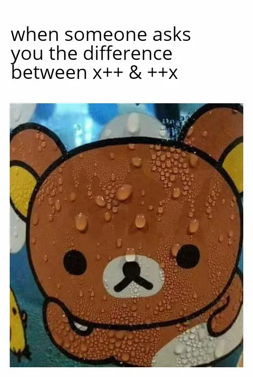 // what the hell?At first glance, adding a post-increment operator x++ should output 1, since it is supposed to increment the initial value of x by 1, making the output… 1. The same as for the pre-increment operator ++y, which does output 1. What’s going on here?